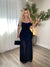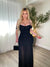 This figure-hugging dress features a beautifully sculpted silhouette with a softly gathered bodice that enhances the bust and creates a flattering sweetheart-style neckline. Delicate thin shoulder straps are paired with off-the-shoulder bands that gently wrap around the upper arms, adding a romantic and feminine detail. The fitted bodice and midsection are designed with elegant ruching that contours the waist and hips, accentuating the natural curves of the body. From the waist down, the dress maintains its sleek, body-skimming fit before transitioning into a drop-waist seam that releases into a flowing, softly pleated skirt, adding graceful movement and length to the design. From the back, slim adjustable straps sit delicately on the shoulders while a discreet zipper closure runs along the center back, and the ruching continues to shape the silhouette through the hips before the skirt falls into the same airy pleated finish, creating a sophisticated and fluid look from every angle.
