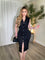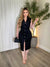 • This dress is the definition of sleek sophistication with a sultry edge.It’s a fitted, midi-length black dress designed to contour and accentuate the figure beautifully. The sleeveless silhouette keeps it modern and polished, while the structured collar and deep V-neckline add a touch of tailored elegance. Down the center front, it features statement metallic buttons that draw the eye vertically, enhancing the streamlined look.The fabric appears smooth and slightly structured, hugging the waist and hips for a sculpted, hourglass fit. A front slit at the hem adds movement and just the right amount of allure, making it perfect for date nights, upscale dinners, or a classy event.