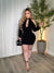 This dress is a sleek, sultry black bodycon mini designed to hug curves in all the right places.It features a high halter neckline with two buttons in the back with a dramatic keyhole cutout at the bust that adds a bold, sexy touch without feeling overdone. The fabric is smooth, stretchy, and lightly satin-finished, giving it that sculpted, snatched look through the waist and hips. Long fitted sleeves balance the neckline beautifully, making it feel elevated and confident rather than too revealing.The length hits mid-thigh, perfect for nights out, date nights, or any moment you want to turn heads. Overall, it’s modern, flattering, and unapologetically confident—a true statement little black dress.