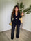 • This stunning black jumpsuit is the definition of sleek, sculpted elegance. Designed with a deep V-plunge neckline, it creates a captivating silhouette while still feeling refined and confident. The long sleeves add balance and sophistication, making it perfect for evening events or upscale nights out.The waistline is cinched with a statement metallic emblem, subtly highlighting your curves and giving the piece a luxurious, designer-inspired touch. The fabric drapes smoothly along the body with a soft sheen, offering a flattering, body-hugging fit through the hips and a graceful flare at the legs for elongation and movement.