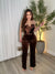 This black velvet jumpsuit exudes classic glamour with a modern edge. It features a strapless sweetheart neckline that accentuates the décolletage, paired with a structured satin bodice detail for a luxurious contrast in textures. The high-waisted fit cinches the waist, enhanced by a sleek black belt, creating a sculpted hourglass silhouette. The velvet fabric gives it a rich, elegant sheen, while the straight-leg cut elongates the figure for a refined, sophisticated look.
