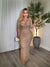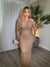 A show-stopping strapless maxi dress designed to sculpt and shine. Featuring a sweetheart neckline with structured bust detailing, this dress hugs the body flawlessly with a smooth, curve-enhancing fit. The shimmering nude-gold fabric catches the light beautifully, creating an effortlessly glamorous look from every angle. Elegant, sultry, and timeless—this piece is made for unforgettable entrances.